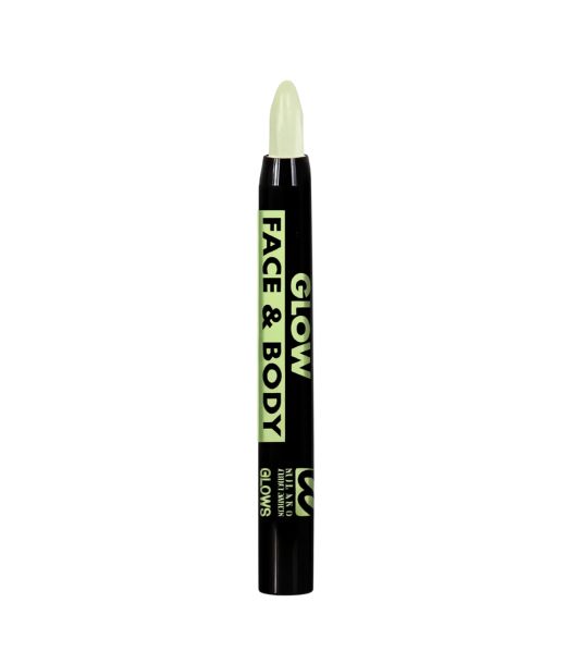 Skab et strålende og iøjnefaldende look til Halloween, fest eller karneval med denne Glow in the Dark sminkestift! Stiften kan bruges både i ansigtet og på kroppen og giver en lysende effekt i mørket.